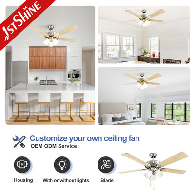 रेट्रो छत पंखे ट्रेंडिंग नई 5 प्राकृतिक ठोस लकड़ी के ब्लेड 5 रोशनी पारंपरिक खींच श्रृंखला