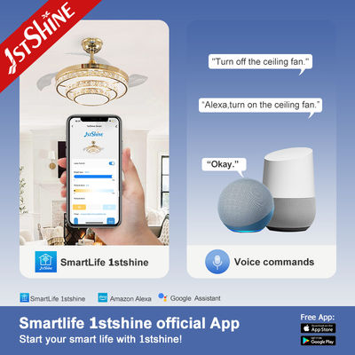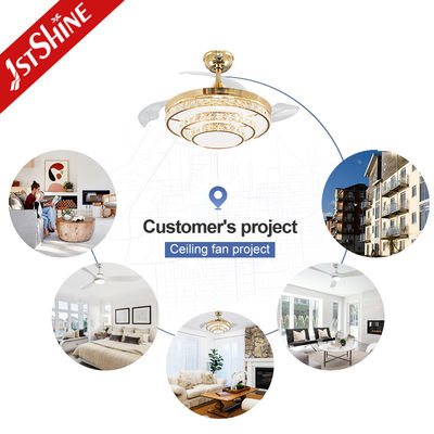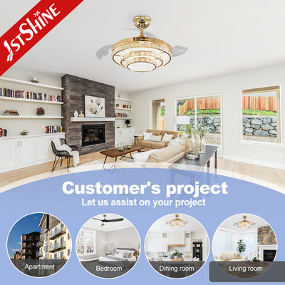 220V क्रिस्टल रिट्रेक्टेबल सीलिंग फैन लाइट रिमोट कंट्रोल एसी मोटर के साथ
