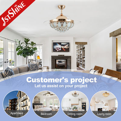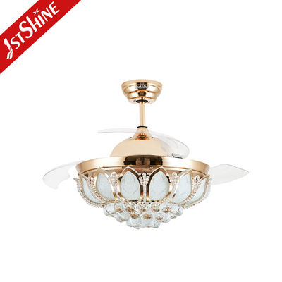 42 इंच क्रिस्टल रिट्रेक्टेबल सीलिंग फैन लाइट मेटल कॉपर ABS ब्लेड