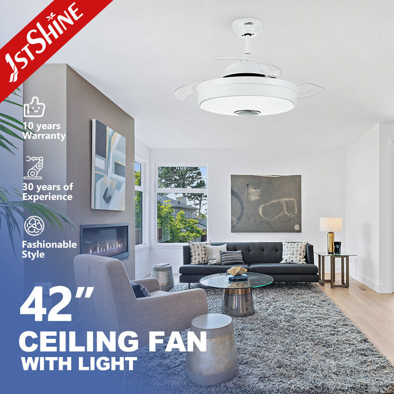 स्मार्ट रिट्रैक्टेबल सीलिंग फैन एचआईएफआई से लैस है। डिममेबल एलईडी लाइट आपके कमरे को रोशन करने के लिए संगीत का पालन करेगी।इसके अलावा नीचे स्थित विशेष लैंपशैड प्रकाश की चमक को नरम करता है और अधिक कोमल प्रकाश की गारंटी देता है.अपने कमरे के स्थान को अपने साथ नृत्य करने दें.