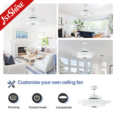 वाईफाई नियंत्रण 3 गति 65W छिपे ब्लेड के साथ retractable पंखे प्रकाश