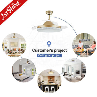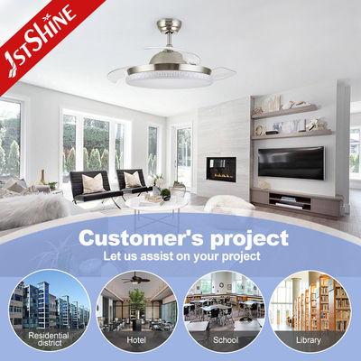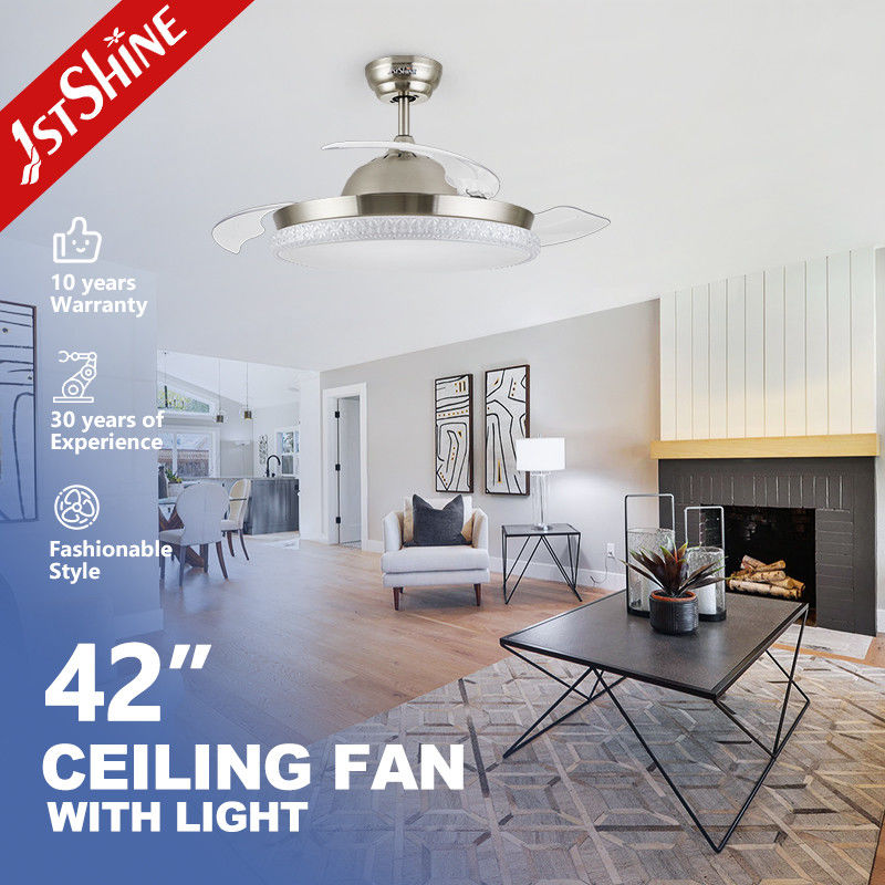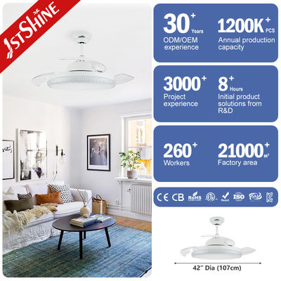 लाइट्स के साथ रिट्रेक्टेबल सीलिंग फैन, बेडरूम के लिए 42 इंच आधुनिक सीलिंग फैन, 3 रंग बदलने योग्य