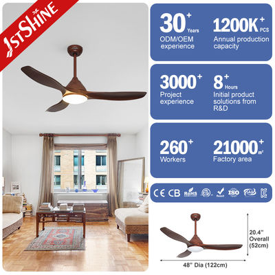 48 इंच प्लास्टिक एलईडी छत प्रशंसक लकड़ी अनाज रंग ब्लेड डीसी मोटर
