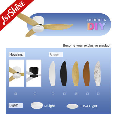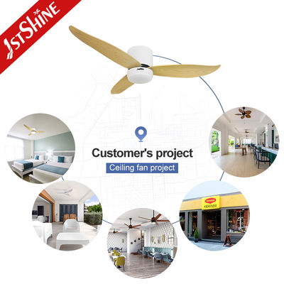 52 इंच लकड़ी अनाज रंग एबीएस ब्लेड फ्लश माउंट एलईडी छत प्रशंसक