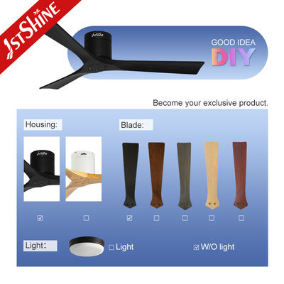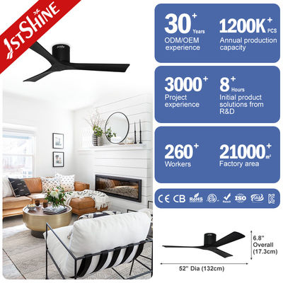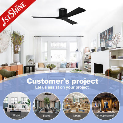 3-ब्लेड सॉलिड वुड सीलिंग फैन ब्लैक फ्लश माउंट सीलिंग फैन रिमोट कंट्रोल के साथ