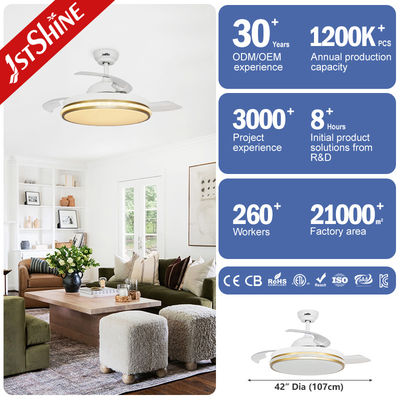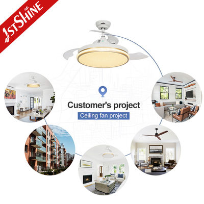 बेडरूम के लिए वाई-फाई नियंत्रण के साथ 42 इंच स्मार्ट छोटा खींचने योग्य एलईडी प्रकाश छत पंखे