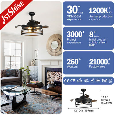 हमारे फार्महाउस सीलिंग फैन में 3 अदृश्य पंखे के ब्लेड हैं, जो पंखे को चालू/बंद करने पर स्वचालित रूप से बाहर निकलेंगे और अंदर चले जाएंगे। ब्लेड उच्च गुणवत्ता वाली पीसी सामग्री से बना है, जो इसे अधिक टिकाऊ बनाता है। सभी मौसमों में आपकी आवश्यकता के अनुरूप। फार्महाउस सीलिंग फैन लाइट्स में 3 मानक E26 होल्डर हैं, और प्रत्येक होल्डर को विभाजित किया गया है। किसी भी E26 LED बल्ब को पिंजरे को हटाए बिना आसानी से असेंबल किया जा सकता है। लिविंग रूम, बेडरूम, रेस्तरां, डाइनिंग रूम आदि के लिए आदर्श।