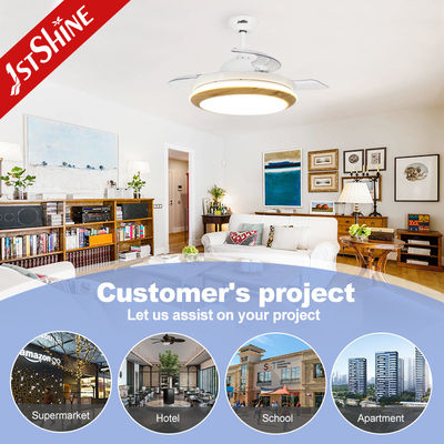 लिविंग बेडरूम रेस्टोरेंट के लिए 3 लाइट कलर चेंज सीलिंग फैन के साथ 3 वापस लेने योग्य ब्लेड