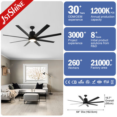 ब्लैक लो प्रोफाइल 64 इंच प्लास्टिक सीलिंग फैन 8 ब्लेड एनर्जी सेविंग