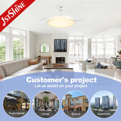 लिविंग बेडरूम रेस्टोरेंट के लिए 3 लाइट कलर चेंज सीलिंग फैन के साथ 3 वापस लेने योग्य ब्लेड