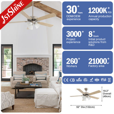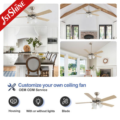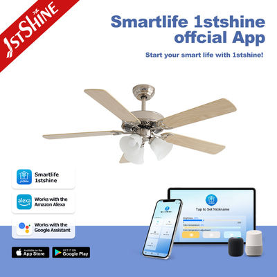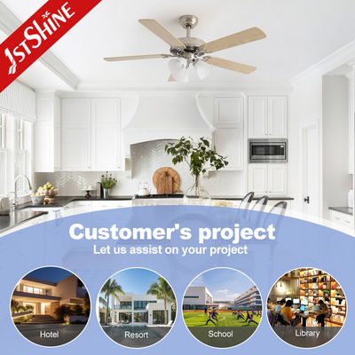 डिममेबल 52 इंच 3 रंग एलईडी लाइट छत पंखा इनडोर प्लाईवुड ब्लेड