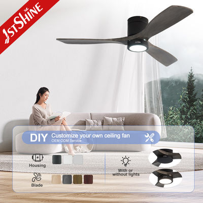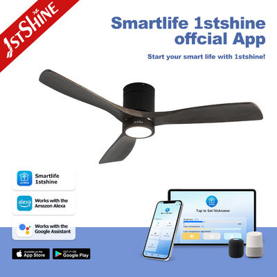 सजावटी 3 प्राकृतिक लकड़ी के ब्लेड फ्लश माउंट एलईडी ट्यूया स्मार्ट सीलिंग फैन विथ लाइट