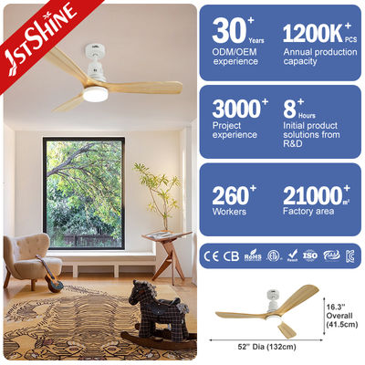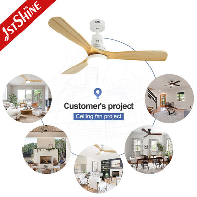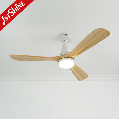 52" लकड़ी का सीलिंग फैन डीसी मोटर डिमेबल एलईडी लाइट के साथ